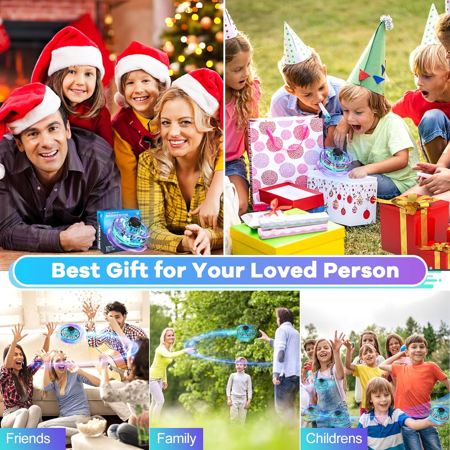 - Fun and Simple UFO Drone Flying Toy:Turn on the power button of flying toys,hold down the center axis to rotate the wheel to start,then throw it away and fly.Different throwing speeds and angles allow different flight paths,tricks,and high-speed maneuvers.Stop the flying by grabbing the mini drone with your hand.You can have fun with friends, family,colleagues indoors,outdoors,at school and in the office.Hover toy is a popular social game at birthday parties,family gatherings